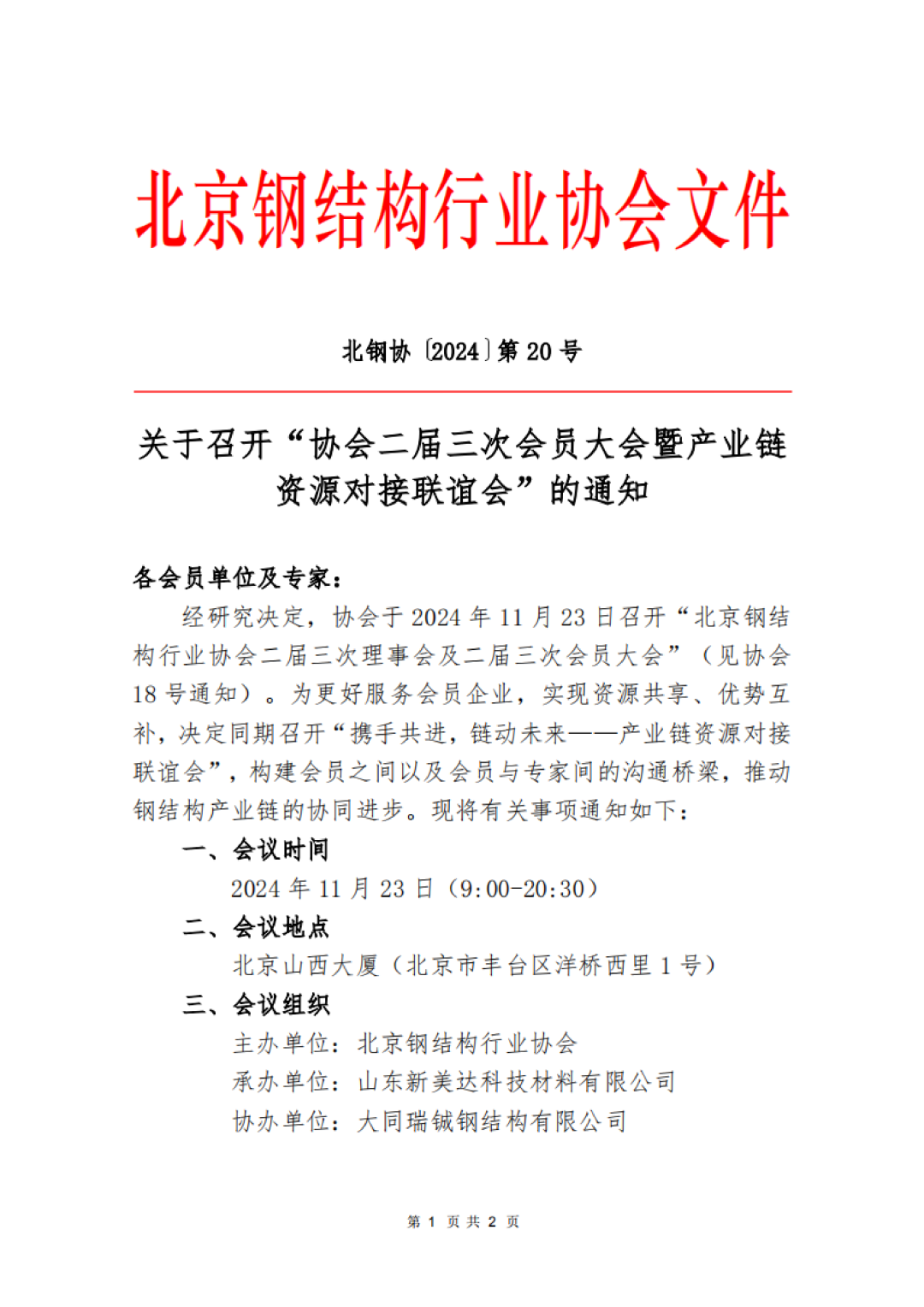 关于召开“协会二届三次会员大会暨产业链资源对接联谊会”的通知