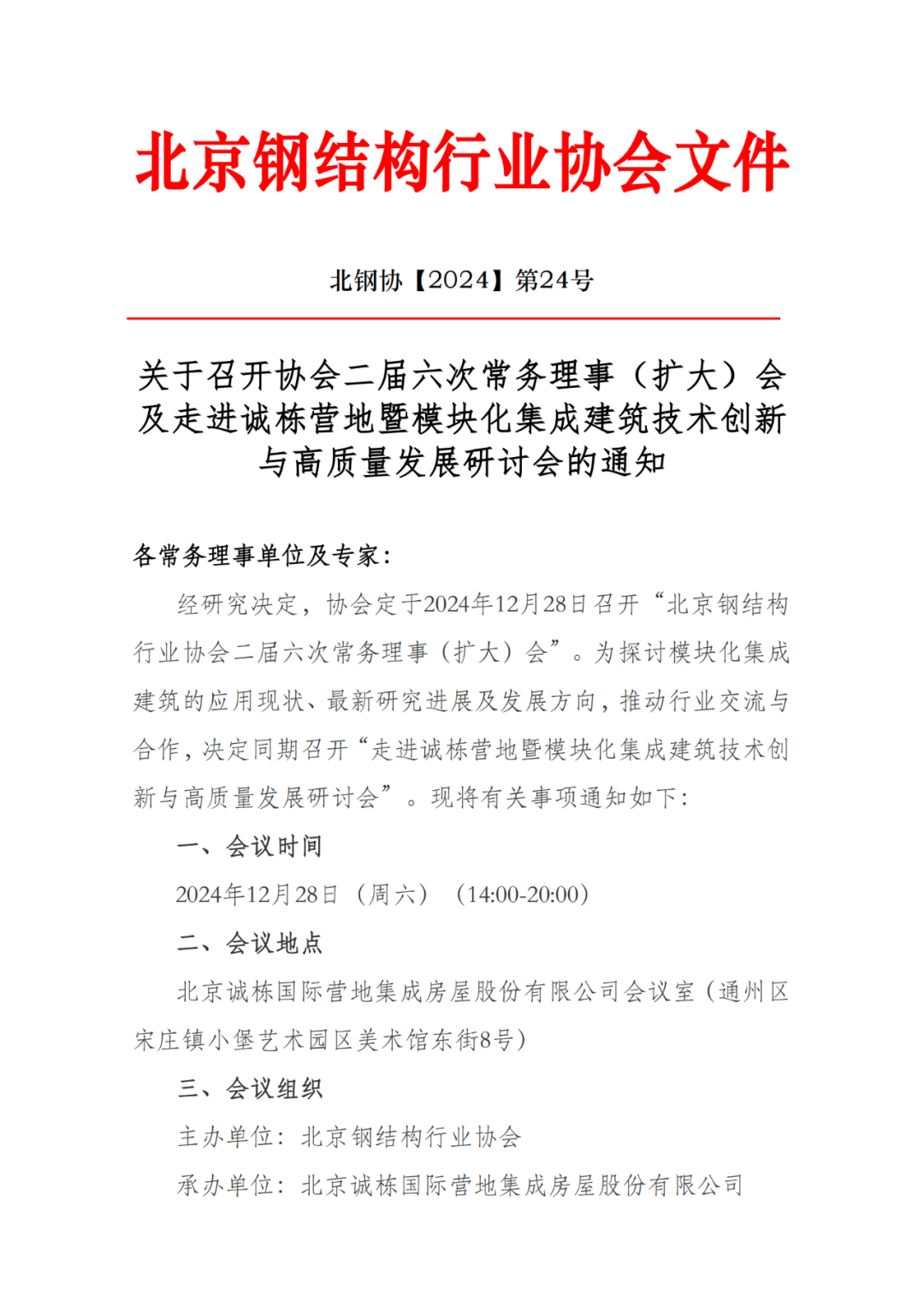 关于召开协会二届六次常务理事(扩大)会及模块化集成建筑技术创新与高质量发展研讨会的通知