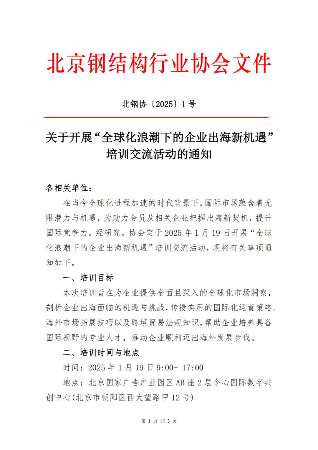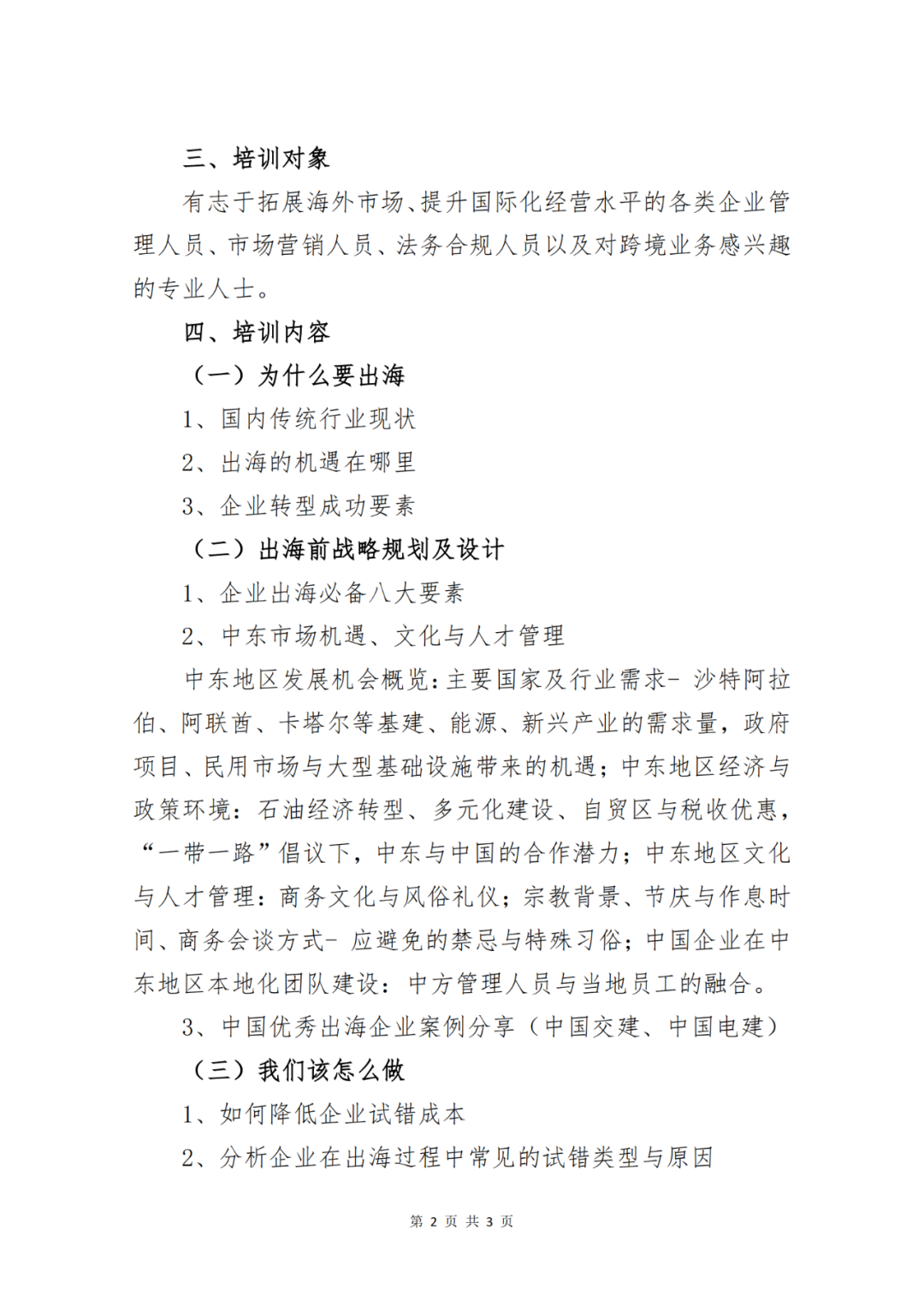 关于开展“全球化浪潮下的企业出海新机遇”培训交流活动的通知